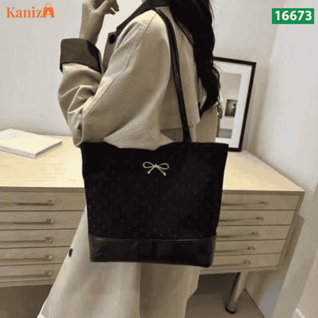 Crafted with a soft cotton inner lining and a durable exterior, this tote bag is made to handle all your essentials effortlessly. The cute bow pattern adds a touch of charm, making it suitable for both casual and semi-formal looks.